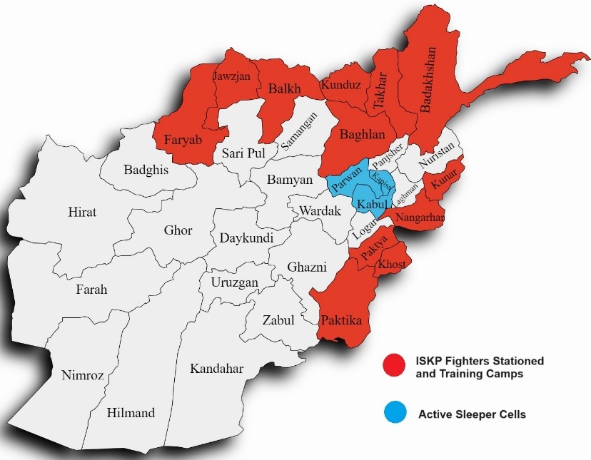 Figure 6: ISKP Fighters Stationed and Training Camps in Red; Sleeper Cells in Blue